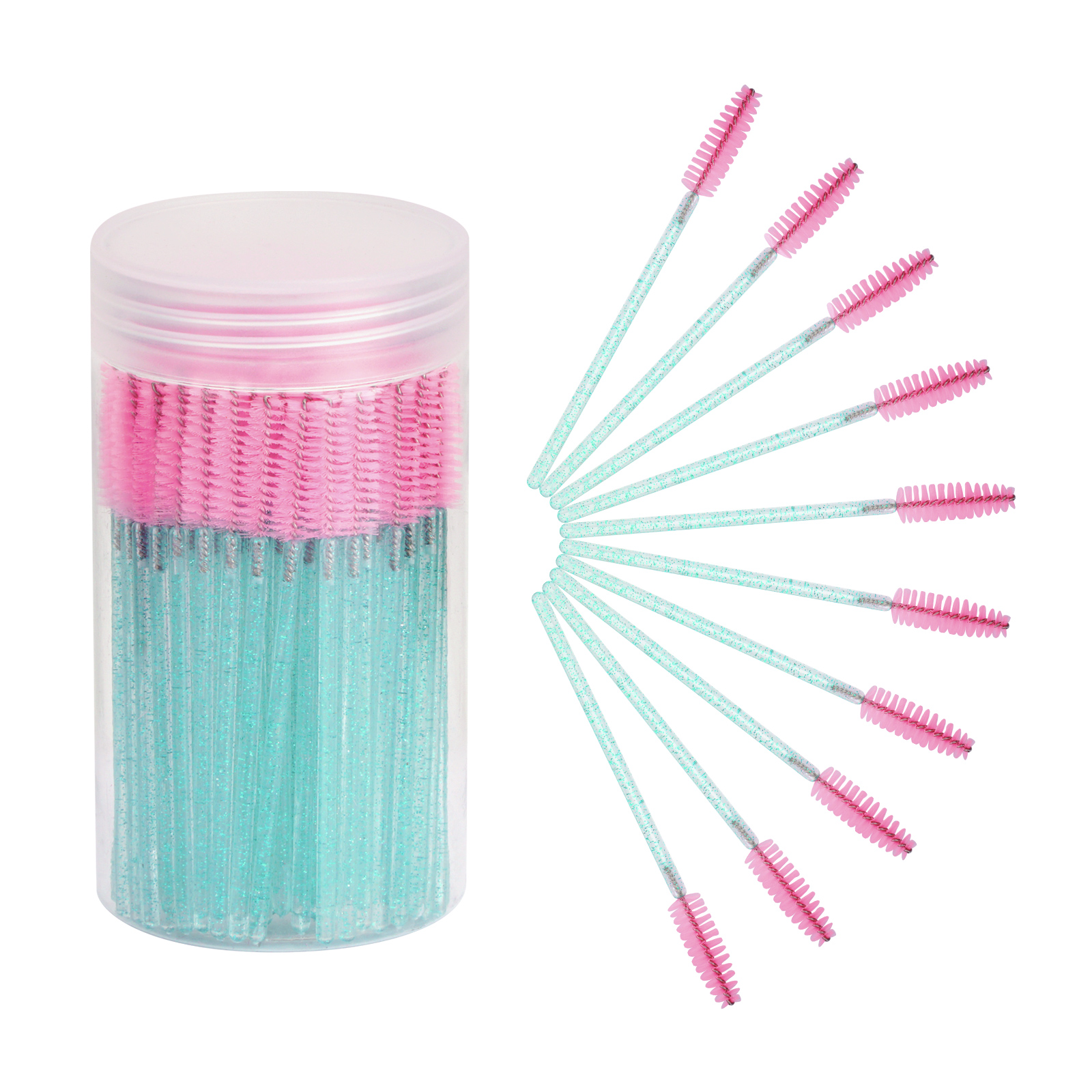 Home  >  Product > Cuttte 100pcs Disposable Mascara Brushes Wands with Container, Crystal Eyelash Brush Spoolie Brushes for Eyelash Extensions and Mascara Use (Crystal Blue Pink)