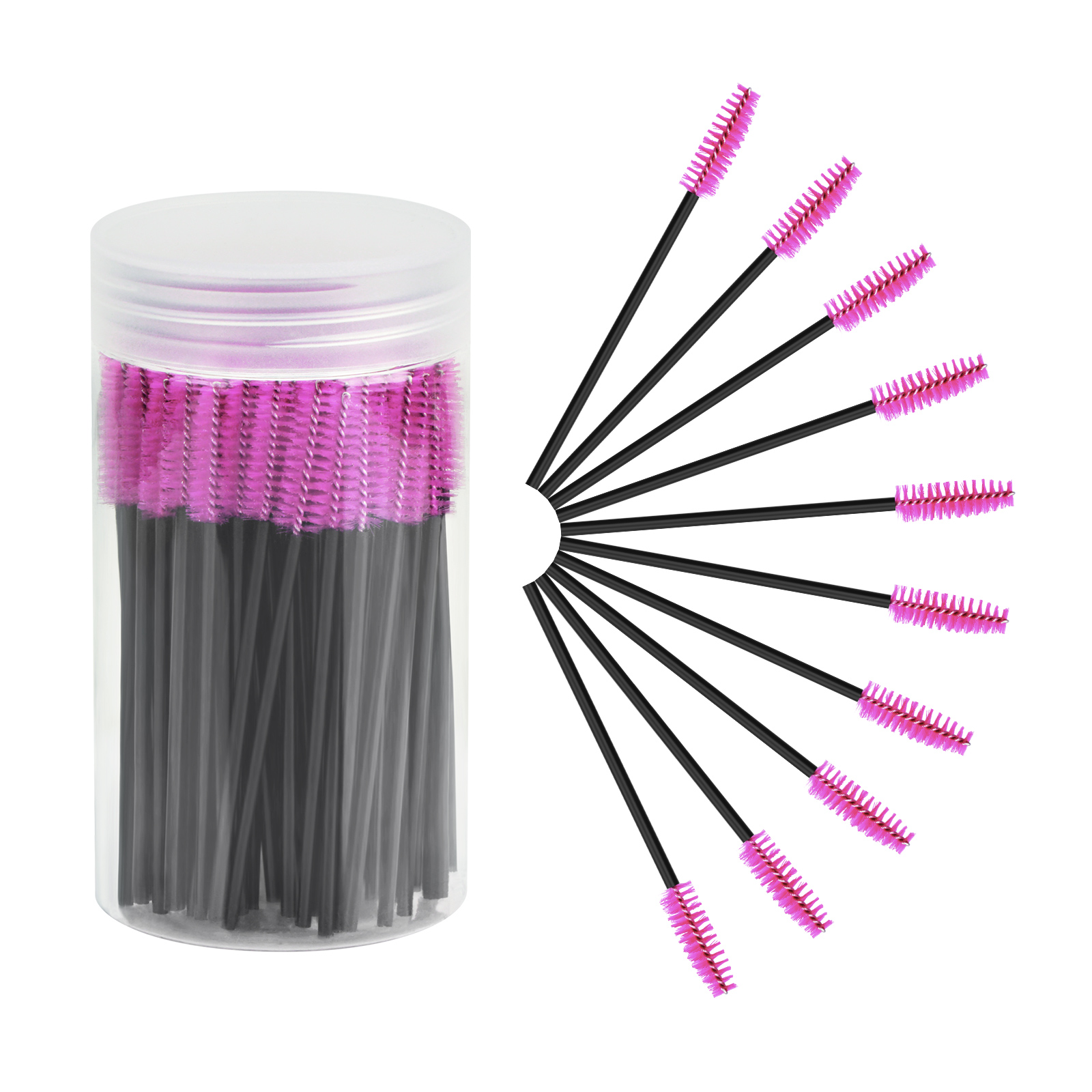 Great assortment. 100pcs disposable eyelash brushes, that will last for a long time. Sturdy hard plastic handle and good quality wire on the brush end should you need to bend it. Solid connection between the brush handle and head. The bristles are soft enough for makeup and mascara use, but stiff enough to clean small parts.