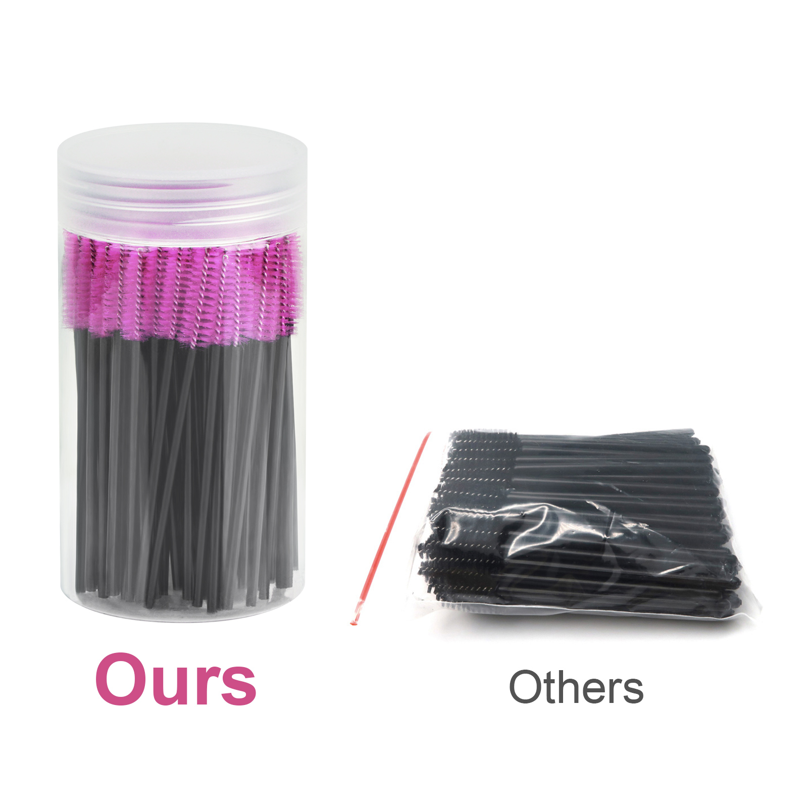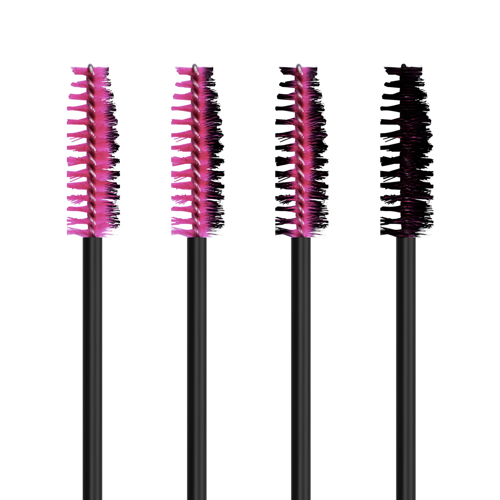 Great assortment. Come with 100pcs mascara wands, enough to use for different purpose. All the bristles are not black, so you can see they're dirty and when to throw away. Also help to see how much mascara is on the spoolie.
